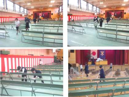 明日の卒業式を控え、5年生の子どもたちが会場の準備や、校内の掃除をしてくれました。明後日からは、都島小学校の最高学年になる5年生は、その自覚の現われか、大変ていねいにかつ意欲的に動いていました。