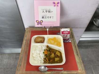 今日の給食は、1年生の皆さんが小学生になったことをお祝いする、入学祝い献立でした。