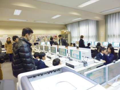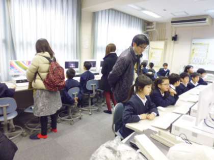 2年生は、前半、後半で交代をします。前半2組は防災に関するウェブサイトで学習をしました。