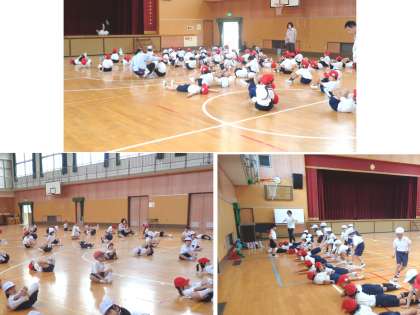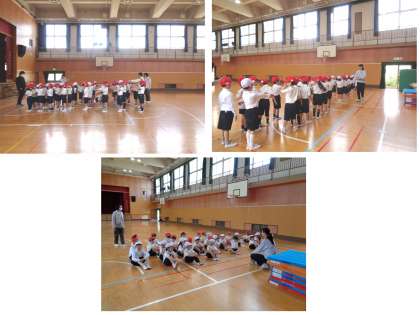 今日は、主に2列や4列の整列の仕方、体育館での広がり方、体育座りなどの集団行動を学習しました。