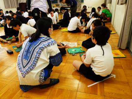 子どもたちは「日本から種を送って、木を増やす」「寄付で学校を作る」「学校の先生になる」など、SDGs(持続可能な開発目標)の視点から、自分たちにできることを話し合いました。実際に行われているSDGsや国際協力の取組みについて知ることもできました。