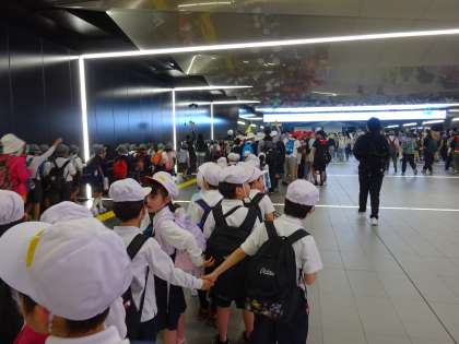 1年生は初めての電車。ドキドキしながらもすごく楽しそうです。