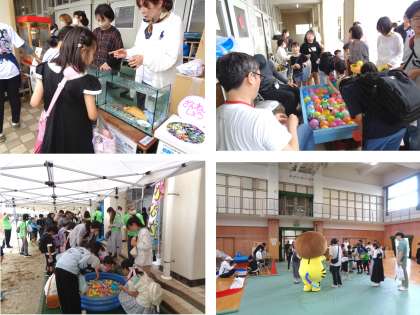 多くの子どもたちが参加し、運動場に面したブースでは、ヨーヨー釣り・コイン落とし・射的などを楽しんだり、焼きそば・おでん・フランクフルトなどを食べたりしていました。