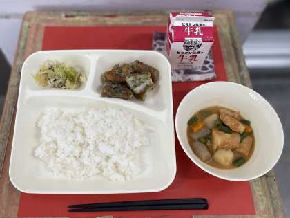 給食のちくわのいそべあげは、ちくわに小麦粉と青のりを混ぜ合わせた衣をつけてあげています。