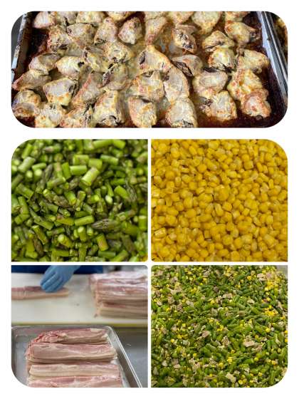 グリーンアスパラガスのソテーは、春が旬(たくさんとれておいしい時期)の生のグリーンアスパラガス、コーンをいため、塩こしょうで味付けしています。