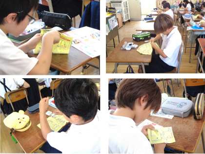 仕上げは、前回学習した「玉どめ」です。玉どめは、布にピッタリくっついた位置で止めるのが難しそうでした。時折、「痛っ!」という声も聞かれましたが、どの子も集中して取り組んでいて、作業しながら「楽しい」という声も聞かれました。