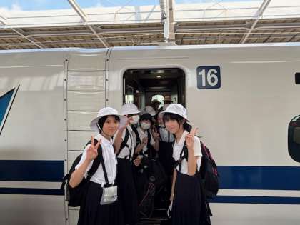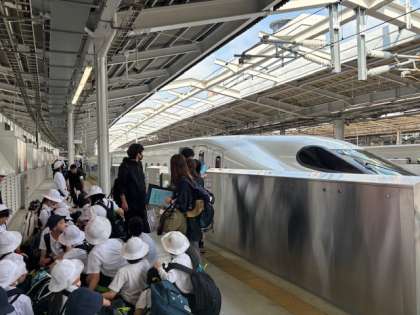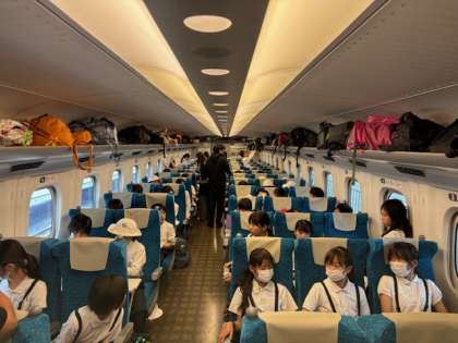 9:11発の修学旅行専用列車に乗車しました。みんな、興奮気味です。