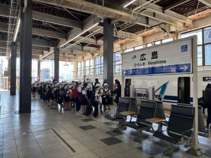 10:48 広島駅に予定通り到着しました。みんな、超元気です。