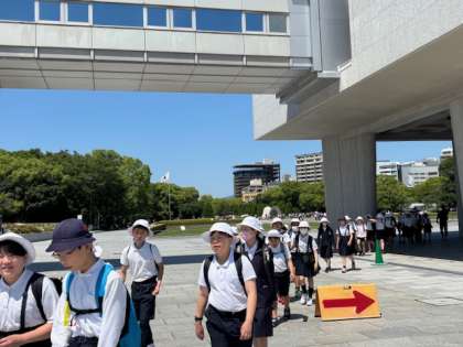 被爆体験伝承者の方からのお話を聞かせていただくために、平和記念公園から歩いて10分ほどのJMSアステールプラザへ移動しました。