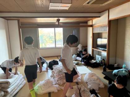 起床の時刻となりました。慣れない布団であまり眠れなかった人もいたようですが、大きなケガ・病気はありませんでした。