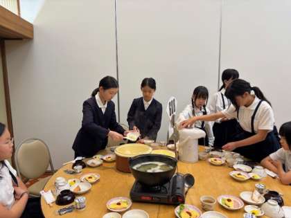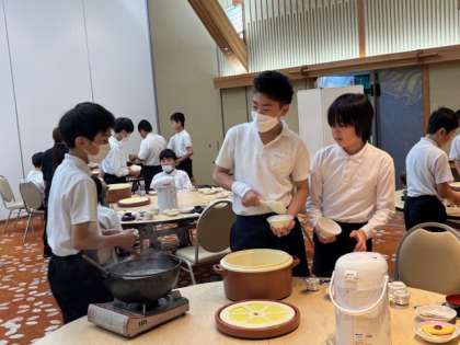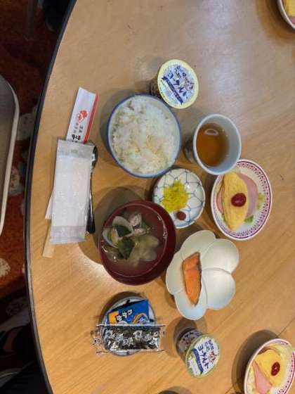 時間通りに集合ができ、朝食のスタートです。メニューは、写真の通りですが、特にアサリのみそ汁の評判がよかったです。