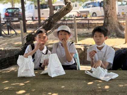 修学旅行 1組もみじ饅頭いただきました