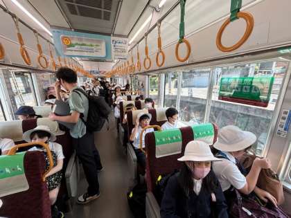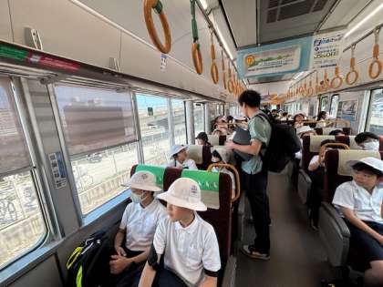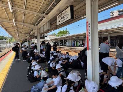 ? JR宮島口駅から在来線で、広島駅に行きます。
