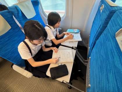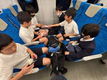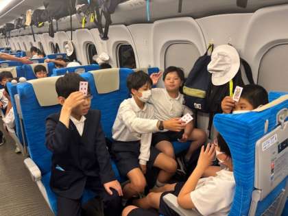 疲れの見えた子どもたちですが、新幹線の車内で復活して、友だちと過ごせる貴重な時間をカードゲームなどで過ごしていました。