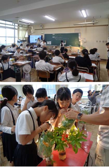6年生では、植物が光合成により酸素を作り出すことをホウセンカを使って実験をしていました。ただ、今週はなかなか晴れる日が期待できず、ライトを太陽に見立てて実験を行いました。
