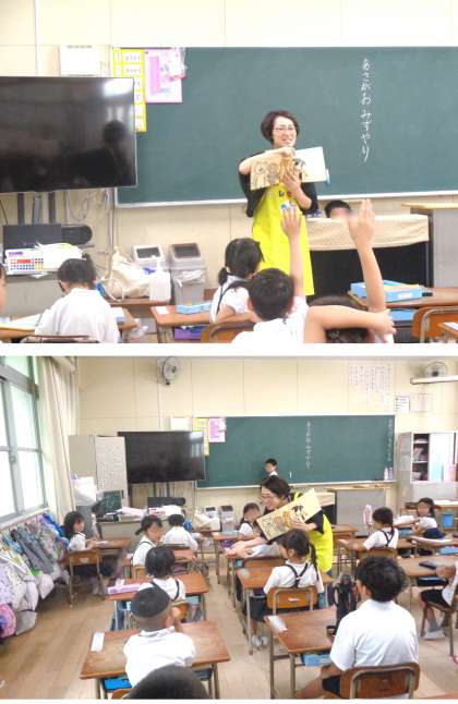 6月25日(水)恒例の読書ボランティア「もこもこ」さんによる読み聞かせは、今日は1年生と4年生の日です。