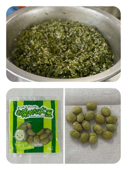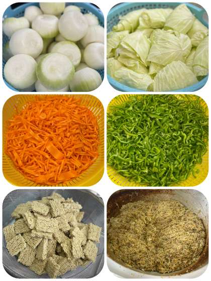 米、パン、麺、芋、油、砂糖、ごまなどがあり、今日の給食では、ミニコッペパン、中華めん、油、砂糖が使われました。
