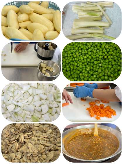 大阪市の給食では、小麦アレルギーのある人も食べることができるように、米を粉にして作られる米粉(上新粉)でとろみをつけています。