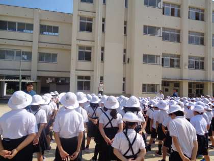 子どもたちは、暑い中でしたが、しっかりと話を聞くことができていました。