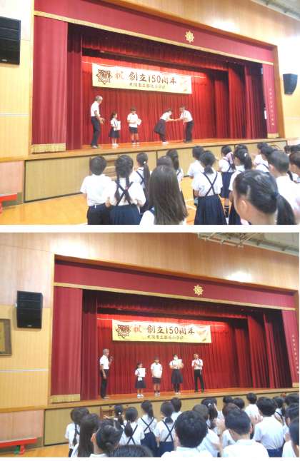7月17日(木)、1学期の終業式を講堂で行いました。式に先立って、読書賞の表彰を行い、3人の子どもたちが表彰されました。