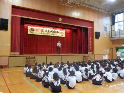 生活指導の教員からは、「早寝」をしっかりすることなどの話がありました。最後に、みんなで校歌を歌い、式を閉じました。