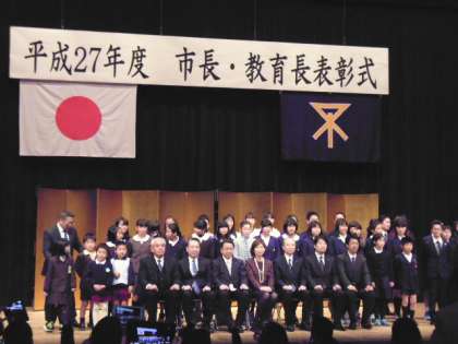阿倍野区民センターにおいて、平成27年度教育長表彰が行われました。