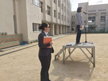 今年度最初の児童朝会