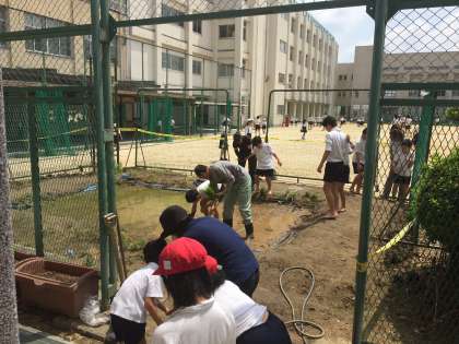 本格的には明日のたんぽぽタイムですが、今日は明日の修学旅行でたんぽぽタイムに参加できない6年生中心に田植えをしました。
