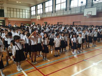 校長先生からは、石を投げてはいけない。特に人に向けて投げては絶対にいけないという大事なお話がありました。
