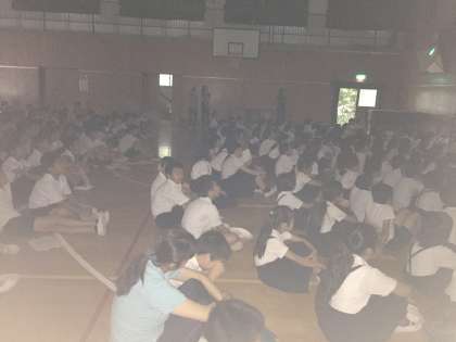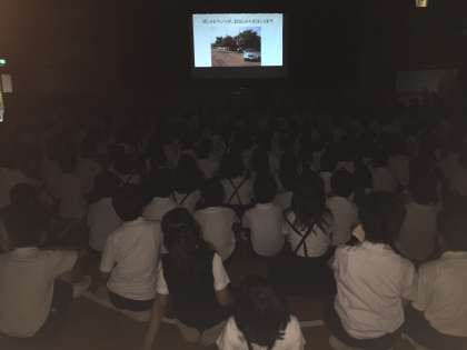 児童集会で図書館補助員の佐久間さんのお話がありました。