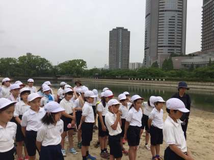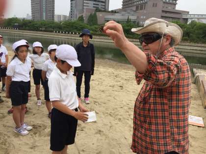 水質検査をしたり、生き物調査としてカニ釣りを自然にふれました。