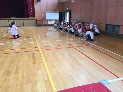 2組は講堂で体育をしました。