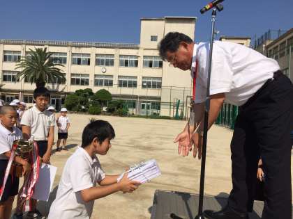 日曜日、区子ども会のドッチボール大会があり、男子が準優勝しました。