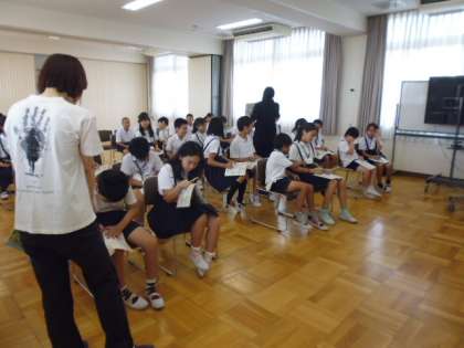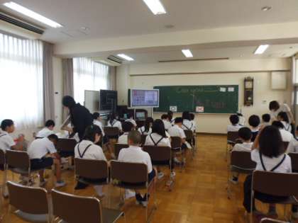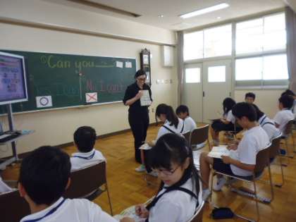 6年1組がC-NETのエイドリアンさんから英語の授業を受けました。