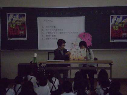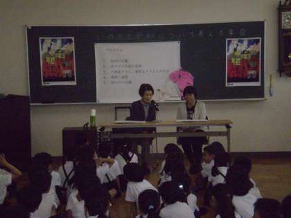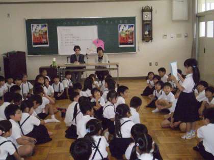 低学年、中学年、高学年に分かれて多目的室で行いました。