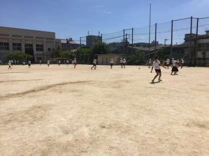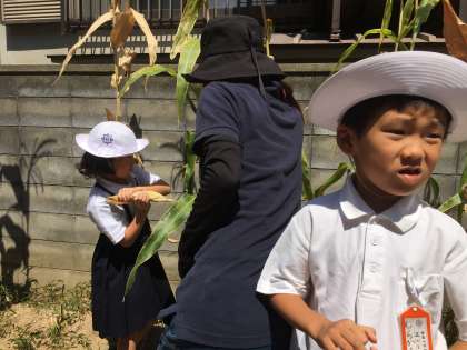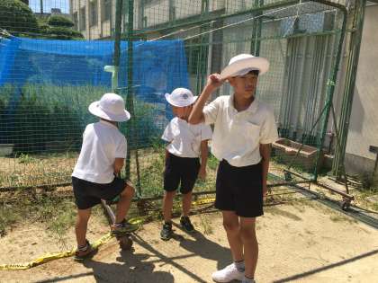 休み時間は熱中症予防のため、帽子をかぶって遊んでいます。