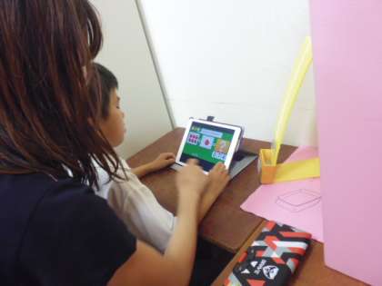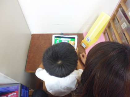 ICTを活用して算数を学習している様子を教育実習生が見学しました。