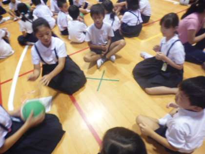 まずグループごとにボールが配られました。