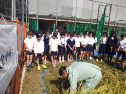 1学期に田植えをした田に稲が実りました。