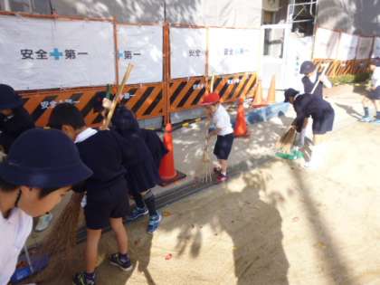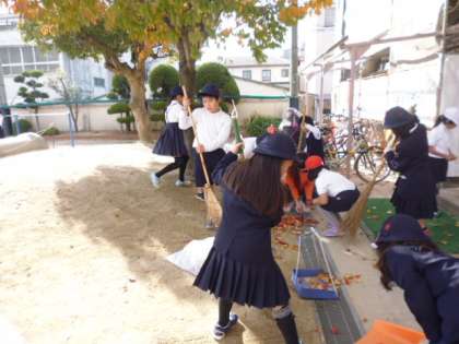 校内外を美しくしようと清掃ボランティアを呼びかけました。