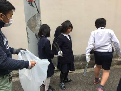 校舎まわりのごみを拾いました。