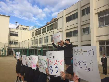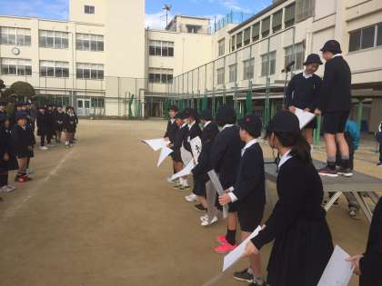 マラソン大会に向けて運動委員会が秘伝をみんなにさずけました。