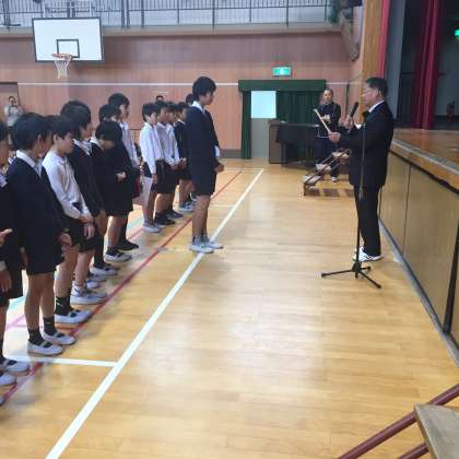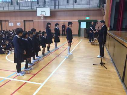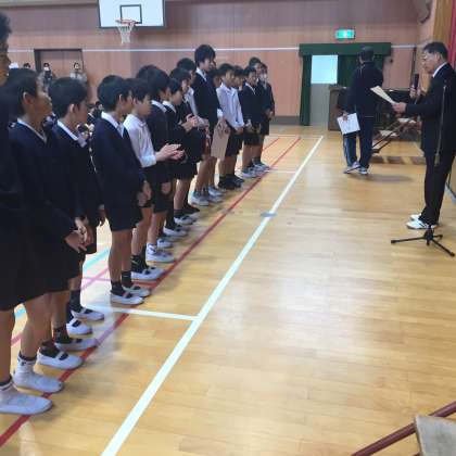 幼少年美術展の入賞者、ライオンズカップミニバス大会に準優勝した男子チーム、なみはや大会の最優秀選手の表彰をしました。