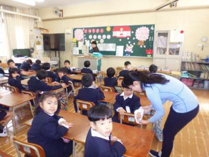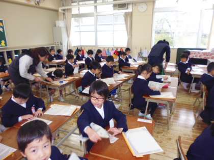 1年生は、お手紙を連絡袋に入れ、学級開きをしました。