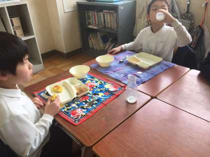 今日は分団集会なので給食後すぐに下校の準備をしました。