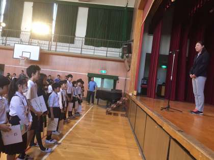 集会活動の前に、藤崎先生のご出産の代わりの先生の紹介がありました。