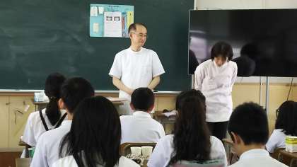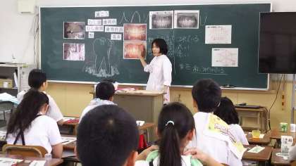 歯科校医の澤井先生と歯科衛生士の亀井先生に来て頂き、歯周病は生活習慣病であり、食生活や普段の歯みがきの習慣が大切だというお話を聞きました。