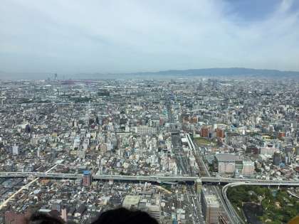 左上に築港と南港を結ぶ赤い港大橋が見えます。