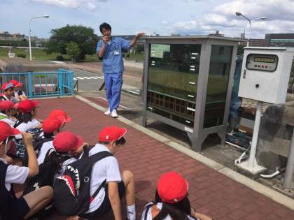砂濾過地で汚れを取り除きます。そうすると砂に汚れがたまります。その汚れは2日に一度洗浄するそうです。