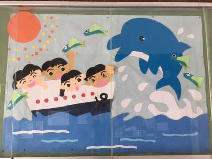 玄関には夏らしい8月の掲示物が貼られています。学校に来た際にはぜひ見てください(^_^)